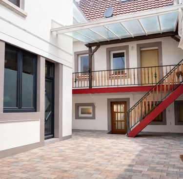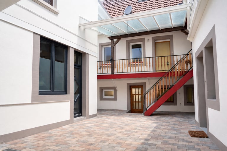 La copropriété dispose d’une cour intérieure, offrant un cadre agréable et paisible, à proximité immédiate des commerces, restaurants et du Château des Rohan.