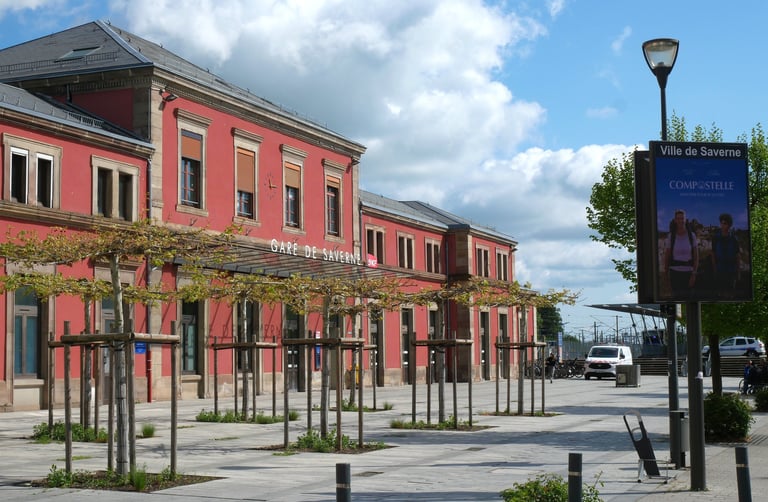 La gare TGV de Saverne se situe à seulement 200 mètres de l’appartement, offrant un accès rapide aux liaisons vers Strasbourg et Paris.